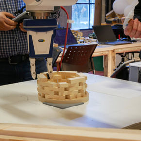 This workshop focuses on practical experience, interdisciplinary collaboration, and scalable design to fabrication logic. Through small-scale exercises, you will learn how to model processes and develop the skills necessary to realize digital parametric designs with robotic fabrication. We will end the week with a design charrette, leveraging DfMA principles and robotic fabrication techniques.